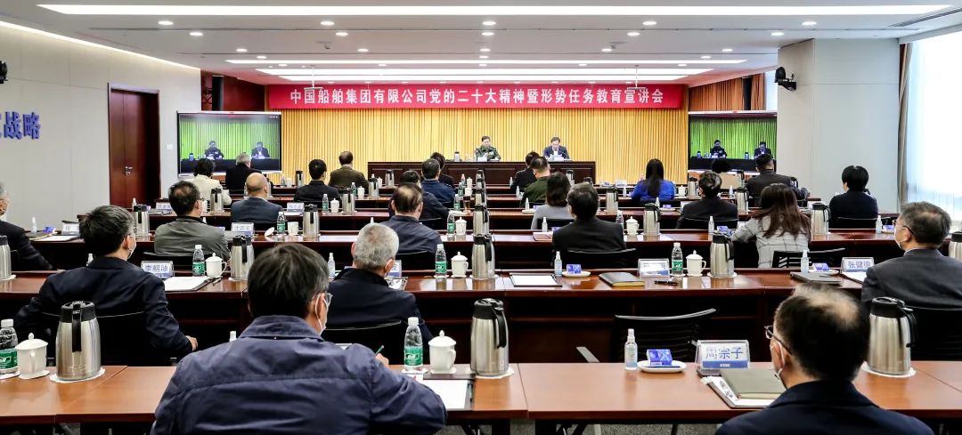 1月30日,中國(guó)船舶集團(tuán)有限公司召開黨的二十大精神暨形勢(shì)任務(wù)教育宣講會(huì),動(dòng)員集團(tuán)上下全面準(zhǔn)確領(lǐng)會(huì)黨的二十大精神,深刻認(rèn)識(shí)當(dāng)前世界百年未有之大變局,更好把握當(dāng)前國(guó)際國(guó)內(nèi)形勢(shì),進(jìn)一步團(tuán)結(jié)帶領(lǐng)廣大干部職工踔厲奮發(fā)、勇毅前行,加快推進(jìn)世界一流船舶集團(tuán)建設(shè)。中國(guó)船舶集團(tuán)黨組副書記、總經(jīng)理?xiàng)罱鸪芍鞒謺?huì)議,黨組副書記、董事杜剛,黨組成員、副總經(jīng)理孫偉,紀(jì)檢監(jiān)察組組長(zhǎng)、黨組成員李佳穎,黨組成員、總會(huì)計(jì)師賈海英,黨組成員、副總經(jīng)理盛紀(jì)綱出席會(huì)議。會(huì)議邀請(qǐng)十三屆全國(guó)政協(xié)常委、提案委員會(huì)副主任,中央軍委聯(lián)合參謀部原上將副總參謀長(zhǎng)戚建國(guó)作宣講報(bào)告。