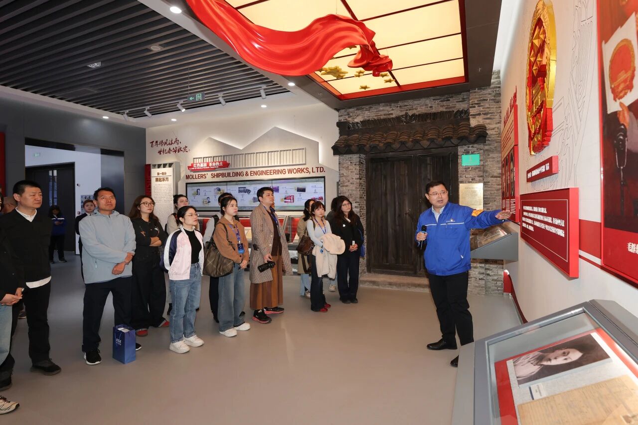 從新中國(guó)第一批金屬國(guó)徽、馬勒船廠(滬東中華前身)工會(huì)成立時(shí)的紀(jì)念刊物、船廠歷年的產(chǎn)品畫冊(cè),到新一代LNG船模、產(chǎn)品設(shè)計(jì)概念和科技創(chuàng)新領(lǐng)域的榮譽(yù),在滬東中華展示中心,媒體記者們既回顧了滬東中華篳路藍(lán)縷、艱苦奮斗的創(chuàng)業(yè)之路,又對(duì)企業(yè)在科技創(chuàng)新方面的舉措與成就,特別是其肩負(fù)LNG產(chǎn)業(yè)鏈“鏈長(zhǎng)”重任、引領(lǐng)行業(yè)發(fā)展的系列成績(jī)有了深入了解。