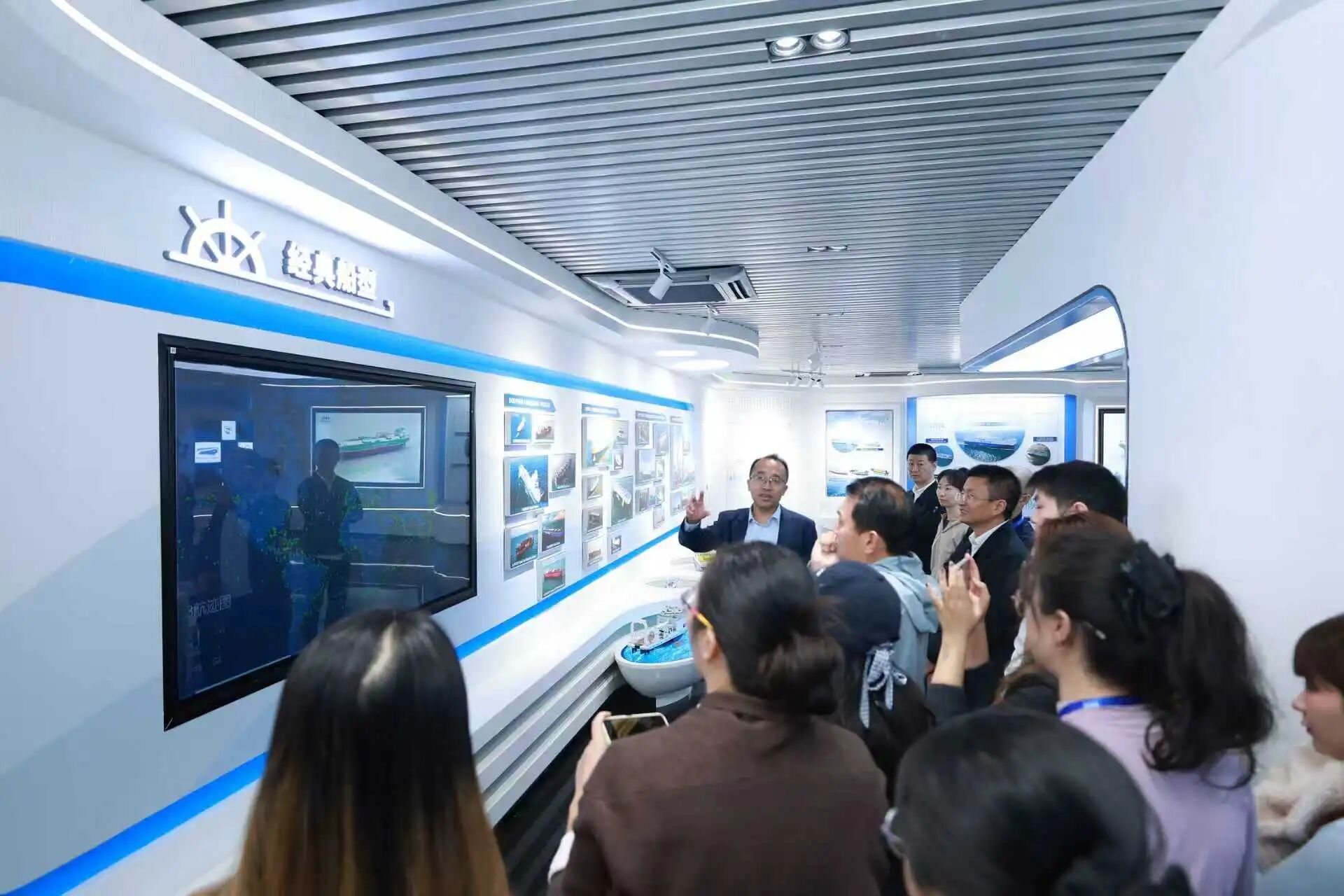 媒體代表團(tuán)先后參觀了上船院展廳及智能船舶實(shí)驗(yàn)室,并聽(tīng)取了相關(guān)專家對(duì)院船型品牌與低碳零碳技術(shù)發(fā)展、數(shù)智賦能船舶研發(fā)設(shè)計(jì)等專題的講解,感受著上船院深厚的科技底蘊(yùn)和創(chuàng)新的澎湃動(dòng)力。