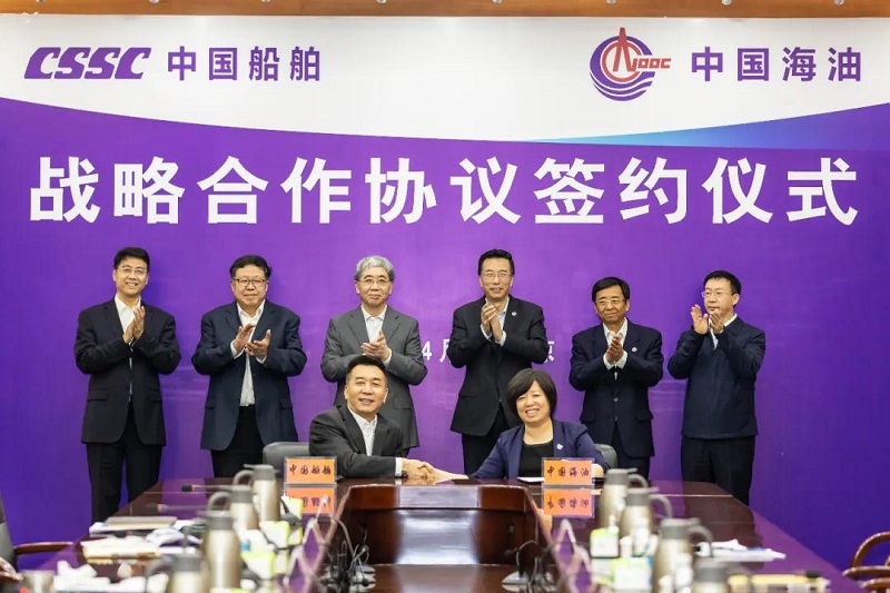 ????根據協議,中國船舶集團和中國海油將建立戰略合作伙伴關系,充分發揮在各自領域的優勢,在海洋油氣勘探開發業務及相關裝備、油氣運輸業務及相關裝備、綠色清潔能源拓展、裝備科研開發等領域開展全方位合作。
