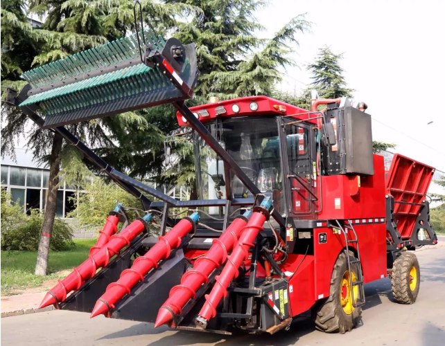 該大型農(nóng)機(jī)設(shè)備,可收割田地坡度小于5°,種植壟距1. 1~1.2米的甘蔗,能同時(shí)完成甘蔗的扶正、分蔗、切梢、跟切、喂入、輸送、除雜和集料轉(zhuǎn)運(yùn)等作業(yè),不需要輔助工具,一次收割兩行,收割效率高。采用整桿式收割模式,有效解決了切斷式甘蔗存儲(chǔ)時(shí)間短的問(wèn)題。獨(dú)特的切刀智能仿形系統(tǒng),使甘蔗跟切喂入更順暢,減小蔗徑損失率,且宿根切口平整,保證甘蔗來(lái)年發(fā)芽率。