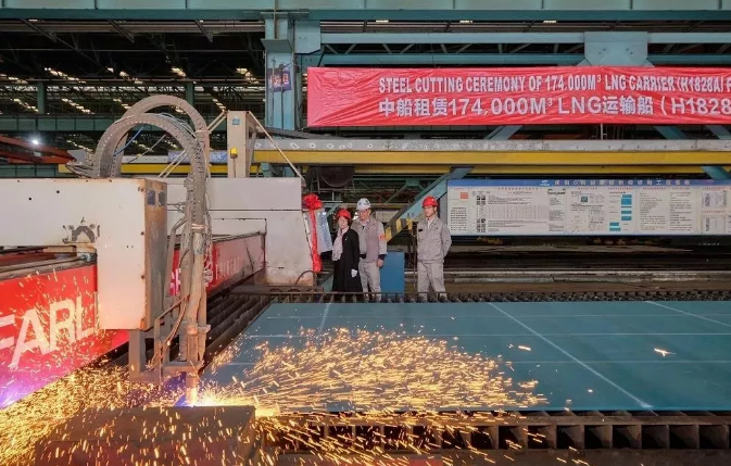 ????近日,中國船舶集團所屬滬東中華造船(集團)有限公司為中船租賃建造的17.4萬方LNG(液化天然氣)運輸船(H1828A)順利開工。