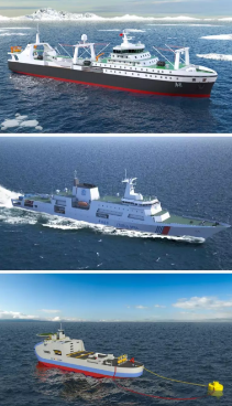 圖1:南極磷蝦捕撈加工船效果圖;圖2:首艘萬(wàn)噸級(jí)海事巡邏船效果圖;圖3:首個(gè)民用涉核總體設(shè)計(jì)項(xiàng)目效果圖。