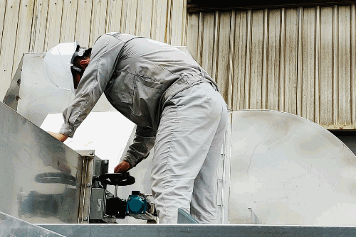 八院海博威集團海通公司環保工程師,正為滬東中華VOCs廢氣治理項目設備進行調試。