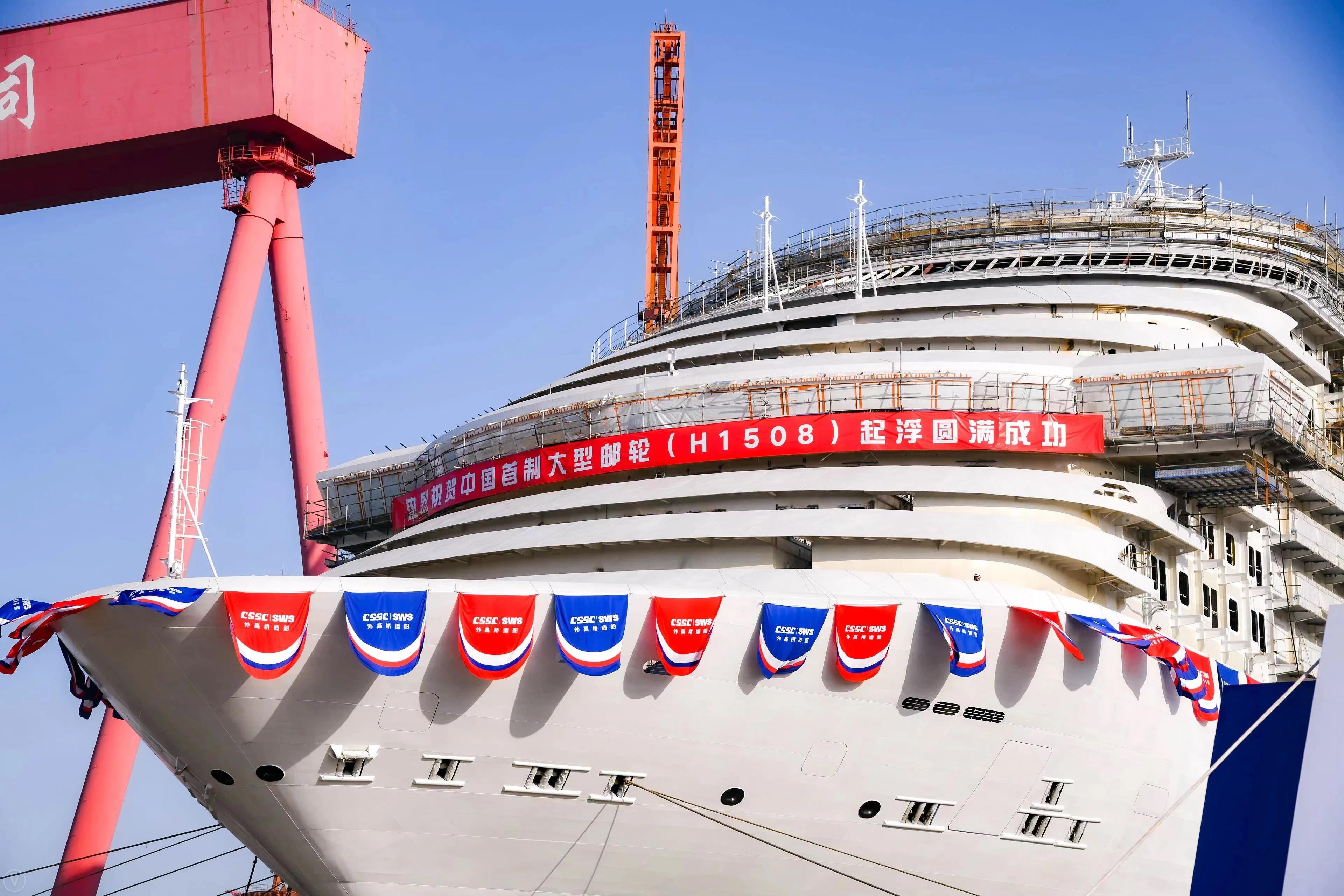 2021年12月17日,由中國船舶集團旗下外高橋造船建造的中國首制大型郵輪順利實現(xiàn)塢內(nèi)首次起浮里程碑節(jié)點,宣告結(jié)構(gòu)和舾裝建造的“上半場”圓滿收官!