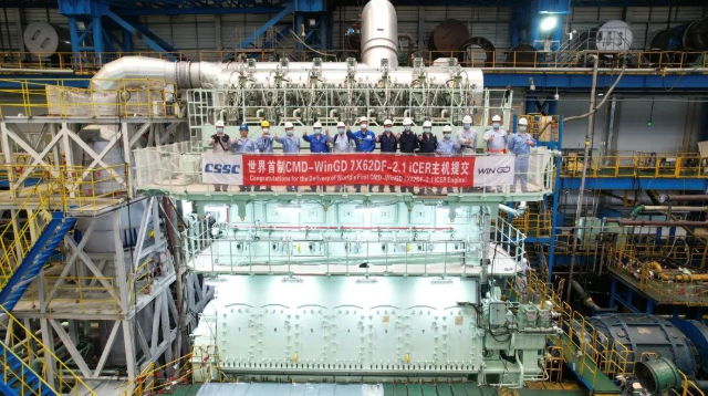 該型雙燃料主機(jī),配置了中國(guó)船舶集團(tuán)旗下WinGD公司研發(fā)的iCER系統(tǒng),最大持續(xù)功率15400千瓦,將作為主推進(jìn)裝置安裝在招商局金陵船廠為日本NYK船東建造的液化天然氣(LNG)雙燃料動(dòng)力7000車汽車運(yùn)輸船(PCTC)上。