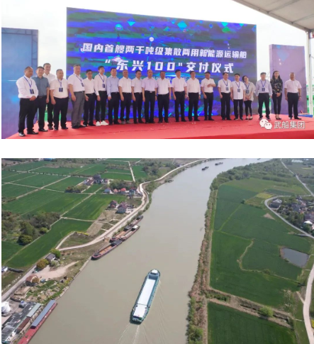 6月20日,中國船舶集團旗下武船集團設計的國內首艘2000噸級集散兩用新能源運輸船“東興 100”,在浙江省湖州市長興縣順利完成交付并投入運營。
