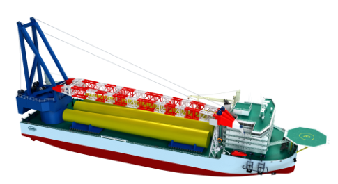 該船船長186米,寬48米,型深16米,滿載排水量約90000余噸。起重機采用單舷側布置設計,起吊高度可達主甲板以上145米,相當于50層摩天大廈。還配備有DP2級動力定位系統,可實現深遠海快速、精確定位。能夠在海上風電場進行各項風電工程作業,主要包括10兆瓦及以下海上風機的基座、支撐塔架、機艙及葉片的吊裝和風機基礎等施工作業,以及其他海上吊裝或支持作業。