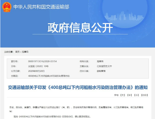 該《辦法》共包含七個章節(jié),旨在防治內(nèi)河船舶污染水域環(huán)境,涉及“生活污水污染防治”“船舶垃圾污染防治”“機器處所油污水污染防治”“洗艙水污染防治”等內(nèi)容。