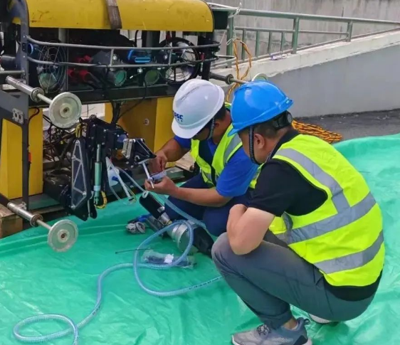 項(xiàng)目組成員克服高溫高濕的環(huán)境和艱苦條件,歷時(shí)近十天圓滿完成有關(guān)試驗(yàn)任務(wù)。本次外場試驗(yàn),充分驗(yàn)證并優(yōu)化了七〇二所在水下工程領(lǐng)域的核心技術(shù),包括水下裂縫檢測、水下裂縫修復(fù)、水下嵌填、水工建筑物表面清理及水下插拔等關(guān)鍵技術(shù)的實(shí)際應(yīng)用效果與操作效率。